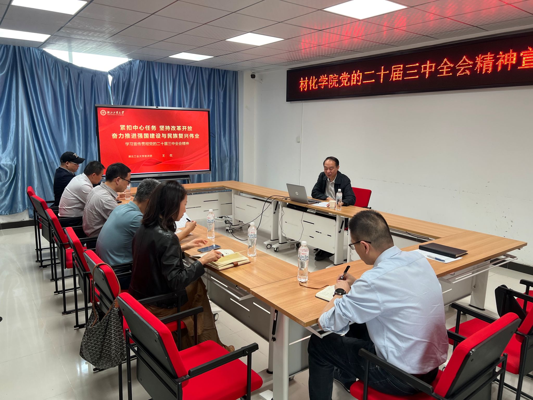 11月14日下午,材料与化学工程学院举行学习贯彻党的二十届三中全会精神宣讲会,校党委常委、副校长王侃作宣讲报告。材化学院领导班子,党支部书记,系、中心负责人参加了会议。