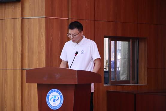 2021级硕士研究生代表王卓,以自身经历为新生们传授学术经验与感悟,希望同学们都能够胸怀“国之大者”,争做“行之实者”,展现新时代研究生风范!
