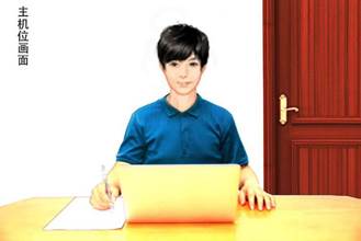 主机位为面试主机位(最好为笔记本电脑或台式机),面向考生,用于考官对考生的远程视频考核。放置面试主机位的书桌应紧贴墙面摆放,主机位摄像头覆盖房间门口。考试开始时考生将主机位摄像头环绕360度,使面试人员查看考场全部场景。考生本人正对设备摄像头,保持坐姿端正,面部、上半身及双手在画面中清晰可见。示意图如下: