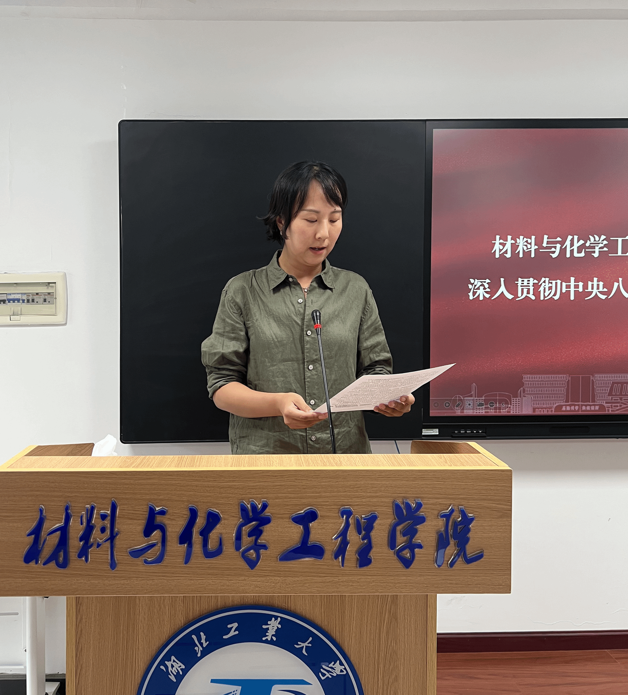 在承诺签署环节,教职工代表严明率先签署《材料与化学工程学院教职工落实中央八项规定承诺书》,并现场宣读承诺内容,从“严守教学纪律、规范科研经费使用、杜绝违规收送礼品礼金”等方面作出庄严承诺,发挥“头雁效应”;全体教职工随后依次签署承诺书,以“书面立诺”的形式,将中央八项规定精神转化为个人行动准则,立下作风建设“军令状”,实现“承诺一人、带动一片”的示范效果。
