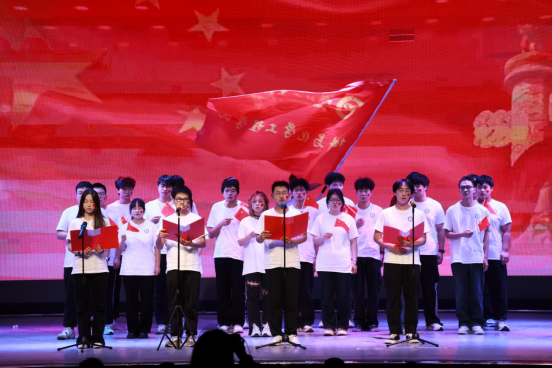 晚会尾声,25高材3班的诗朗诵与合唱《我爱你,中国》将现场氛围推向最高潮。激昂的朗诵铿锵有力,嘹亮的歌声真挚动人,传递着青年学子对祖国的赤诚热爱与美好祝福,家国情怀在旋律中深深扎根。25级辅导员王玥、李涓老师与主席团李彬彬学姐合唱的《如愿》温情满满,歌声里饱含着师长对晚辈的殷切期许,尽显师生同心的浓厚氛围。
