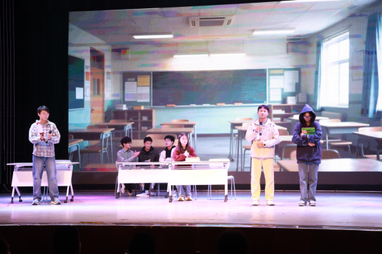 除歌手大赛外,各类文艺节目精彩纷呈,各具特色。25材工拔尖创新班的《天下》以豪迈唱腔彰显少年意气与家国豪情,25高材4班合唱的《老男孩》则用怀旧旋律勾起师生们的青春回忆;心理部精心编排的话剧《破茧》,生动讲述了新生从懵懂迷茫到突破自我的蜕变故事;25轻化2班的《大一新生防骗指南》以幽默诙谐的剧情普及实用防骗知识;文艺部带来的开场舞《Jump》动感十足,迅速点燃现场氛围,后续的《一千零一夜》则以梦幻舞姿勾勒浪漫意境,而25高材1班的《PinkVenom》凭借强劲气场与飒爽舞姿展现青春张力。此外,陈一鸣的脱口秀《随口一说》精准吐槽大学生活趣味点滴,爆笑全场,持续推高晚会气氛。
