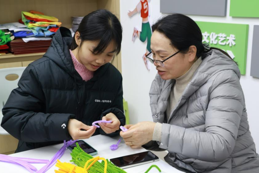 “今天和老师们一起做花,感觉特别有意义,我要把这朵花带回家送给我的妈妈,祝她节日快乐。”一位同学感慨道,从最初的生疏尝试到后来的得心应手,她感受到心流状态的魅力。