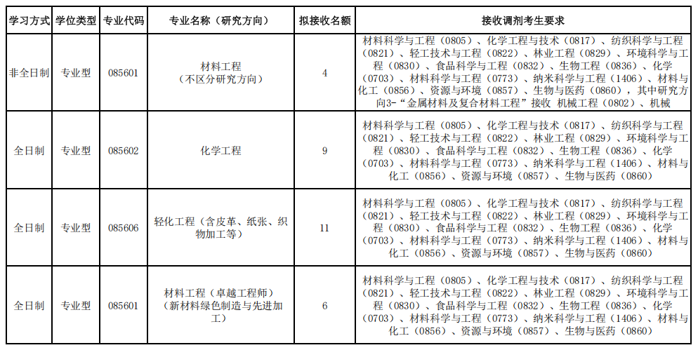 附件:材料与化学工程学院2026年硕士研究生招生拟接收调剂专业一览表