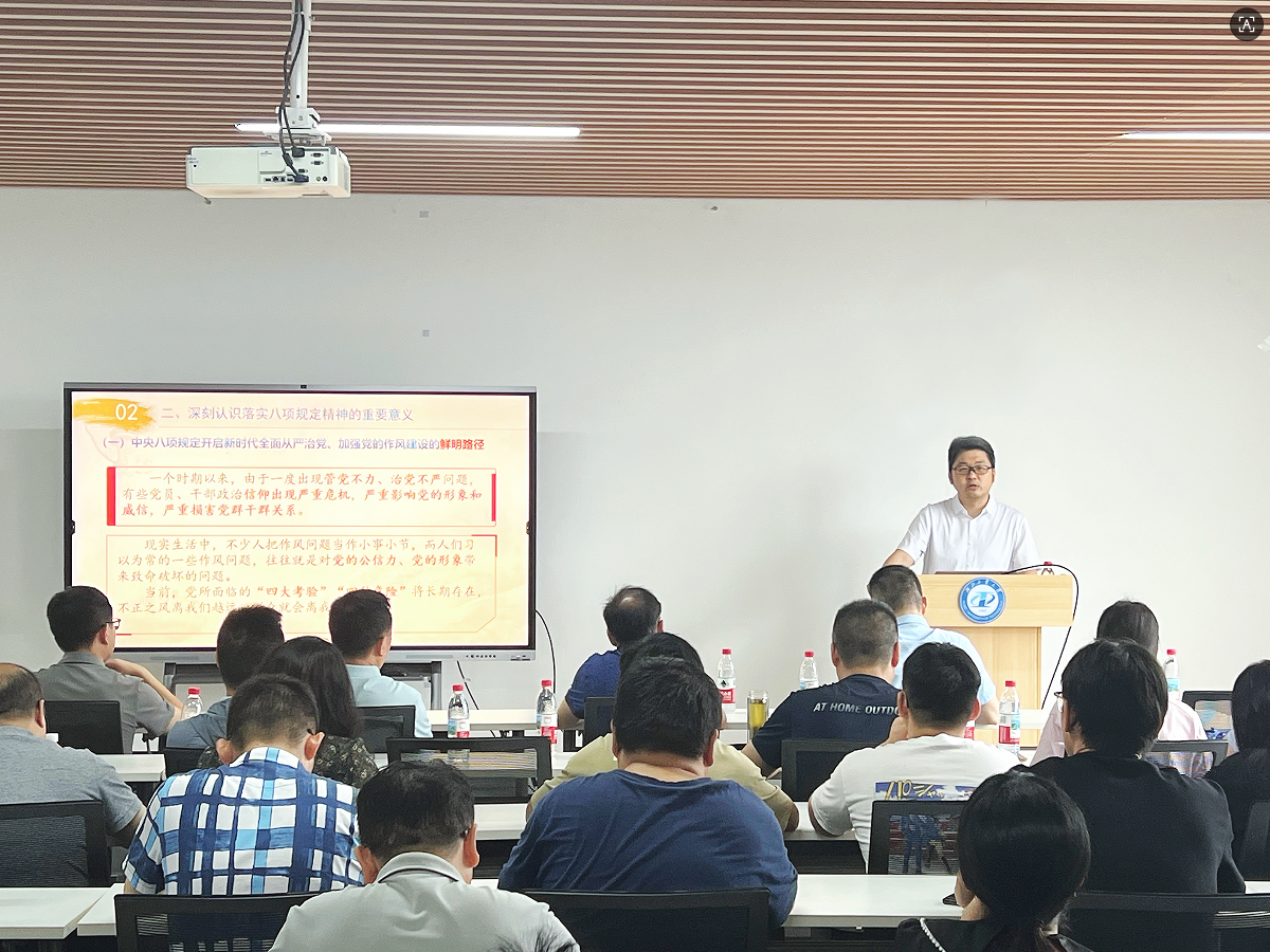 6月19日,校党委常委李政颖以“锲而不舍落实中央八项规定精神,凝心聚力加快高水平工业大学建设”为题,为材化学院、理学院、信息中心党员干部师生讲授深入贯彻中央八项规定精神学习教育专题党课。