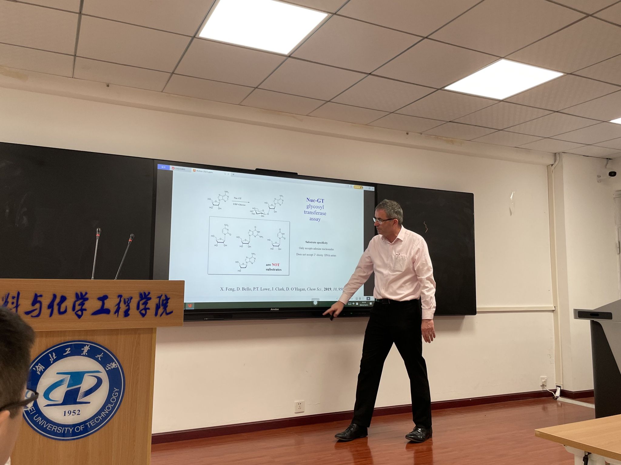 10月23日,应材料与化学工程学院和“新材料与绿色制造引智创新示范基地”的邀请,爱丁堡皇家学院院士(FRSE),英国皇家化学会会士(FRSC)、英国圣安德鲁斯大学化学系David O'Hagan教授来我校进行交流访问。