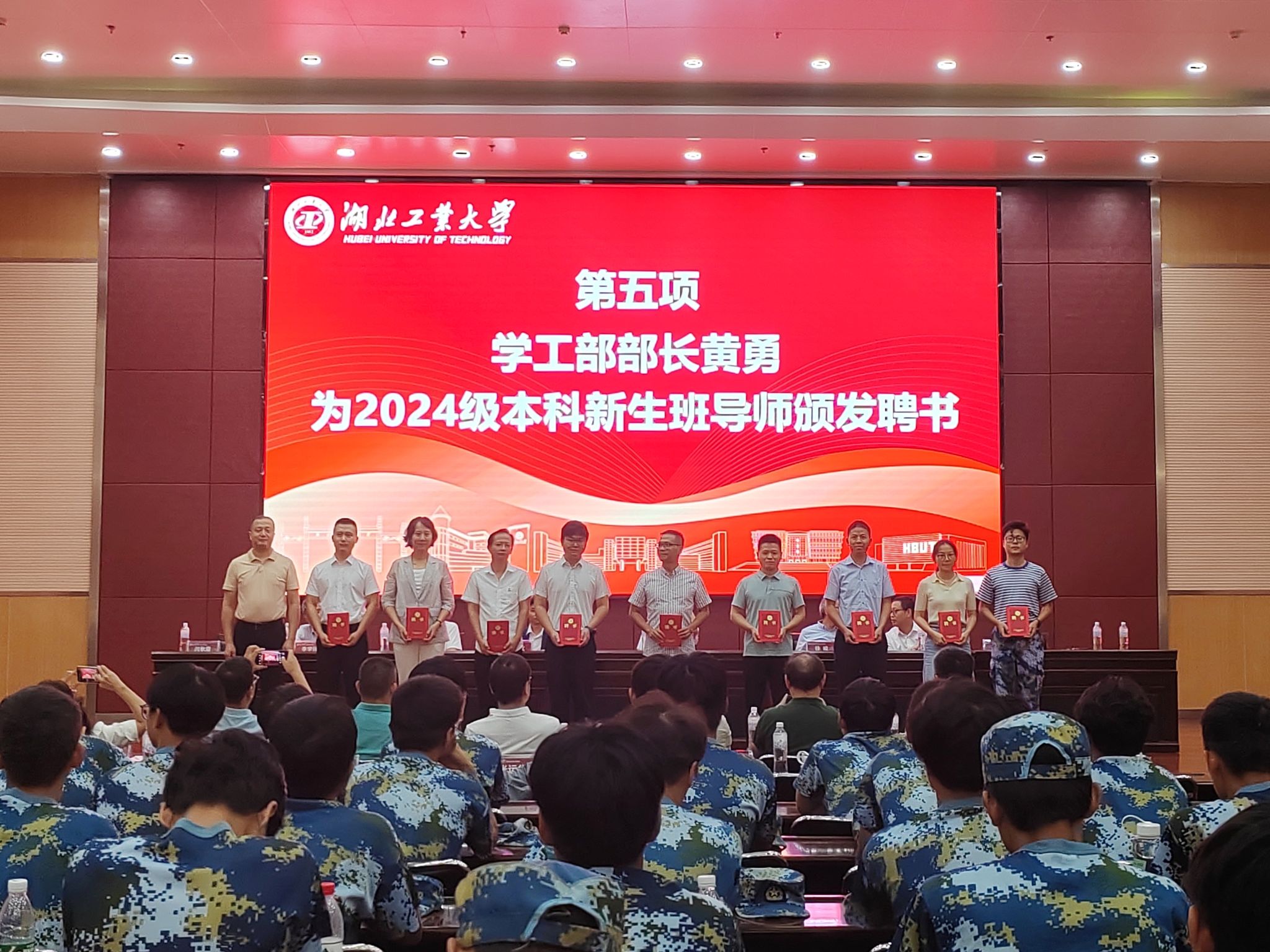 学生工作部(处)长兼武装部部长黄勇为新生班导师颁发聘书。