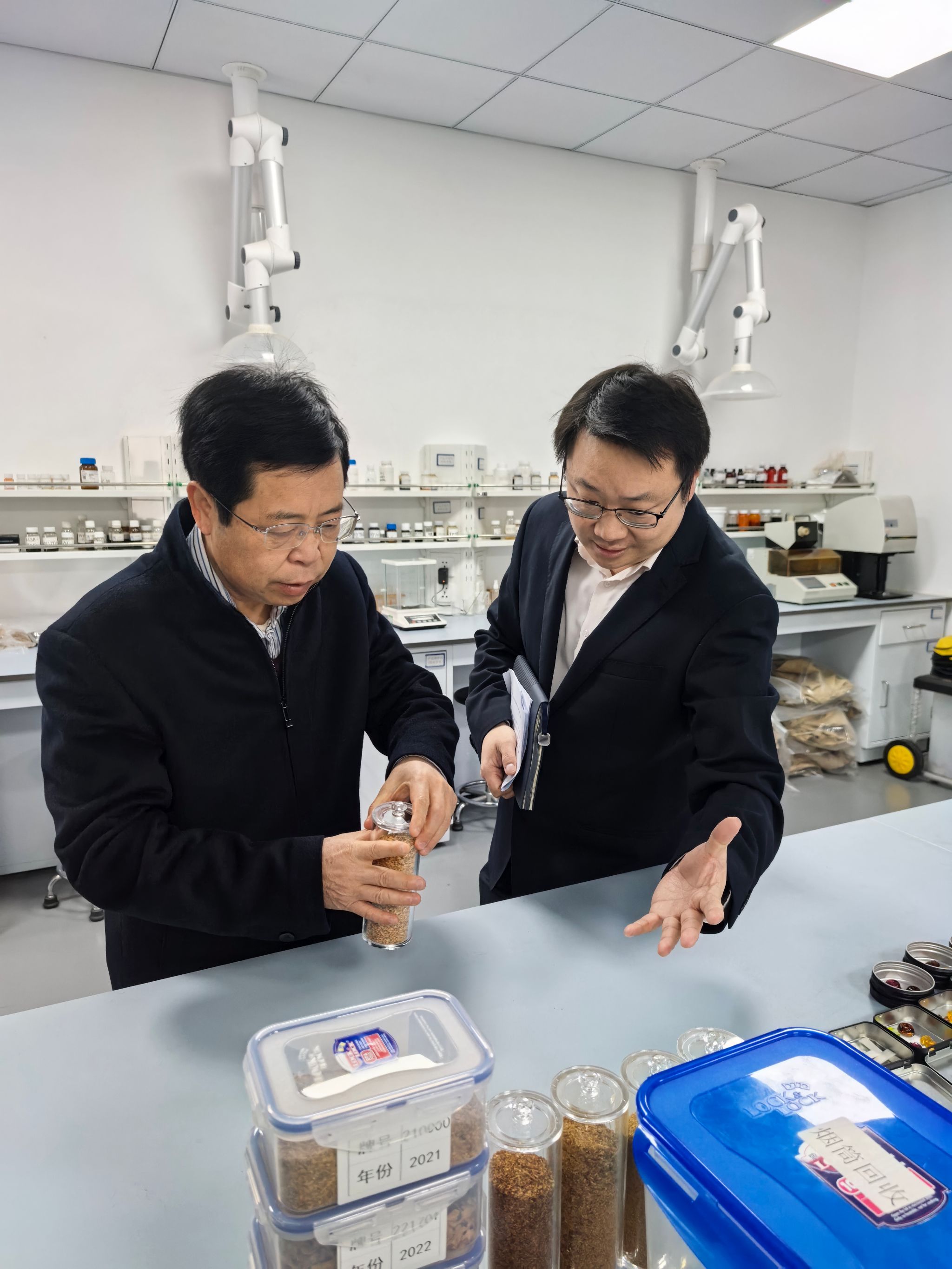 会前,在湖北新业烟草薄片开发有限公司总经理程志昆、技术部主任高颂陪同下,陈自才深入参观走访了公司实验平台和基地。在实验平台,高颂介绍了各类先进的研发设备,这些设备在新型烟草薄片材料的研发与检测中发挥着关键作用,并详细讲解了正在进行的科研项目进展,展示了湖北工业大学与湖北新业烟草薄片开发公司在技术创新方面合作取得的阶段性成果。