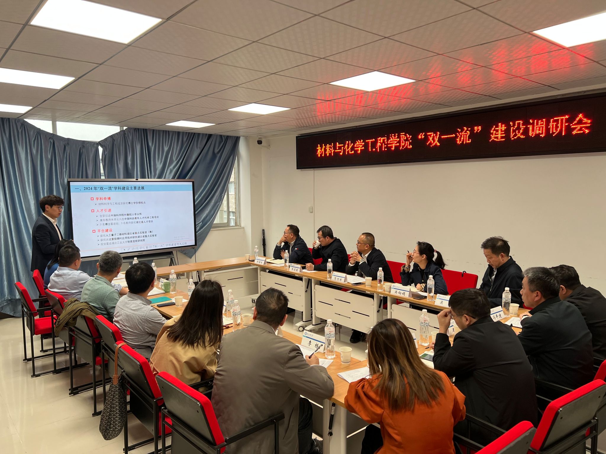 调研会上,材料与化学工程学院院长助理谌援就2024年“双一流”学科建设主要进展及2025年重点工作计划作专题汇报;副院长赵西坡系统汇报了研究生培养、博士后流动站建设及博士点申报等工作推进情况;培养办公室主任杜娜详细介绍了专业监测评估进展及材料科学与工程(先进材料)建设方案。与会领导及教师代表围绕科研项目申报、学科平台建设、人才培养机制、实验室硬件设施提升等议题展开深入研讨,并就需要学校支持事项提出建设性意见。相关职能部门负责人针对学院发展需求逐项给予指导建议。