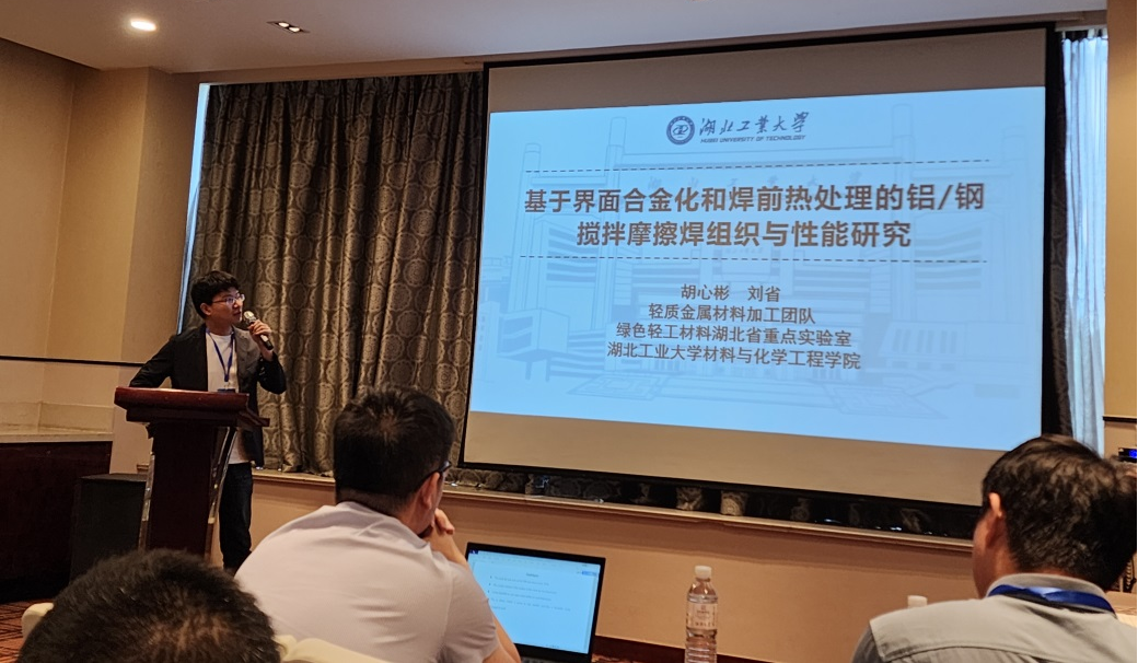 我院教师刘省博士24日下午在大会金属成形分论坛作了题为“基于界面合金化和焊前热处理的铝钢搅拌摩擦焊组织与性能研究”学术报告,重点介绍了我院轻质金属材料加工团队(PI:胡心彬教授)近年来在异种材料连接方面取得的研究成果,并与参会人员进行了深入交流和讨论。