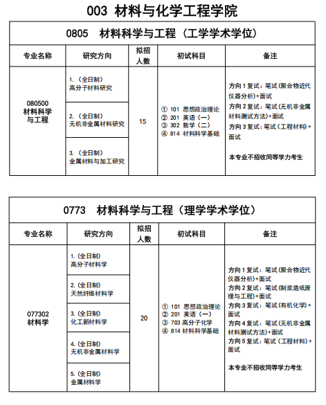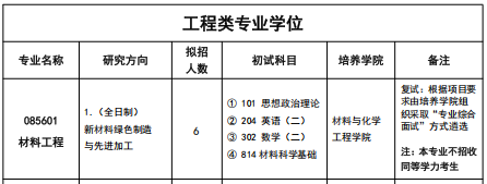 2026 年材料与化学工程学院硕士研究生招生专业目录