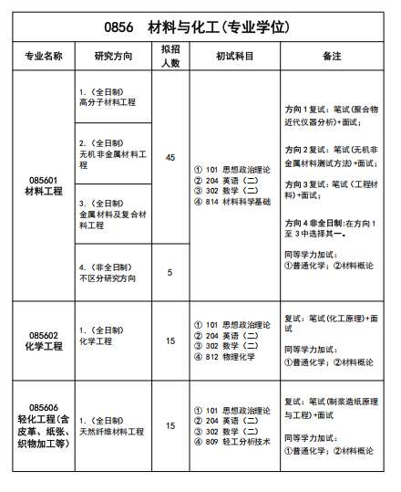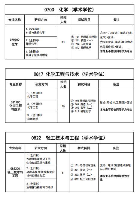4个学术学位硕士授权点:轻工技术与工程、材料科学与工程、化学工程与技术、化学