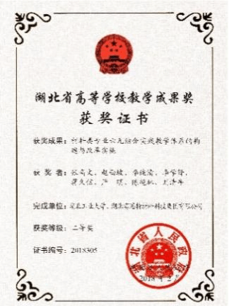 先后获得“全国青年教师教学竞赛工科组一等奖”“湖北省先进工作者”“湖北省五一劳动奖章”“荆楚好老师”“湖北向上向善好青年”等奖项及荣誉称号。