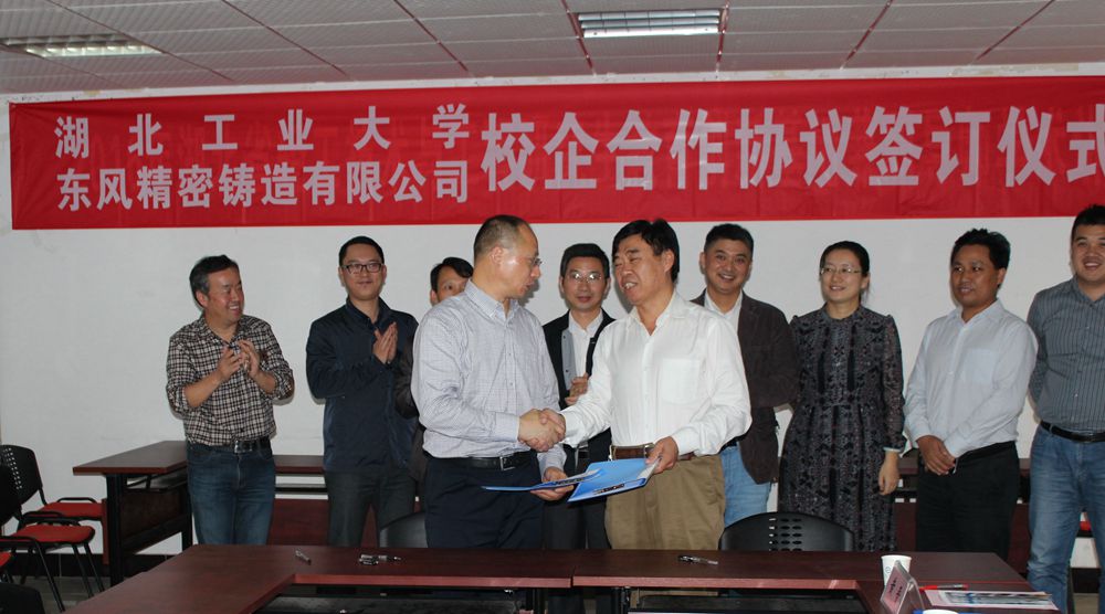最后,湖北工业大学副校长董仕节、东风精密铸造有限公司总经理杜孔明分别代表双方现场签订了“校企合作协议书”。