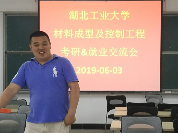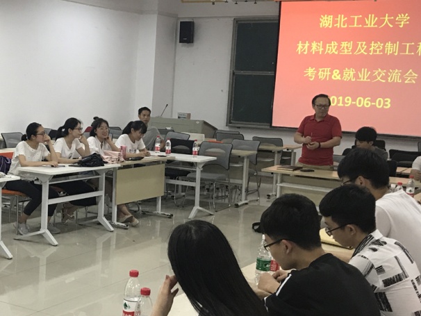 2019年6月3日晚,材化学院材料成型及控制工程系考研与就业经验交流会在教五楼B-001举行。来自15级材控专业的9位同学先后向材控系16、17和18级学弟学妹们分享了自己在考研就业的心路历程和经验心得。交流会由材控系党支部书记、系主任龙威博士主持,材控系部分教师代表出席。