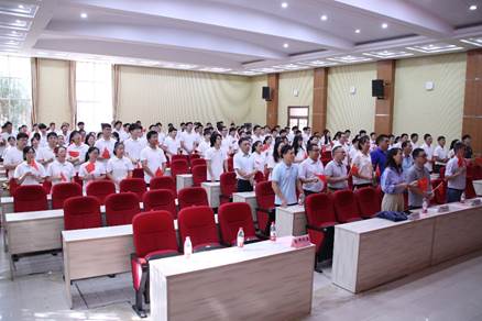 新生干部代表带领全体研究生新生进行学术道德与科研诚信宣誓。这一庄严而崇高的时刻,展示了湖工大材化研究生高昂的精神风貌和严谨的学术理念。
