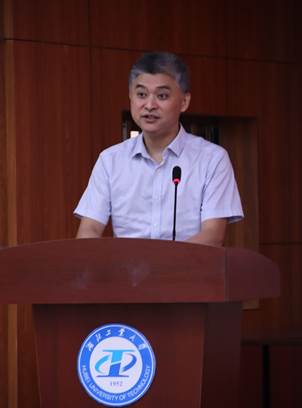 材料与化学工程学院院长李学锋教授为2023级研究生讲授“开学第一课”。他向同学们介绍了学院学科专业情况、培养目标及特色和成果,他寄语大家要志存高远,争做可堪大用、能担重任的栋梁之才;要脚踏实地,在实干奋斗中练就过硬本领;要开拓创新,实现科技自强自立;作为新一代湖工人,要始终听党指挥跟党走,与党和国家、与民族和人民同呼吸、共命运,将个人发展融入到国家意志和民族复兴的伟业中。