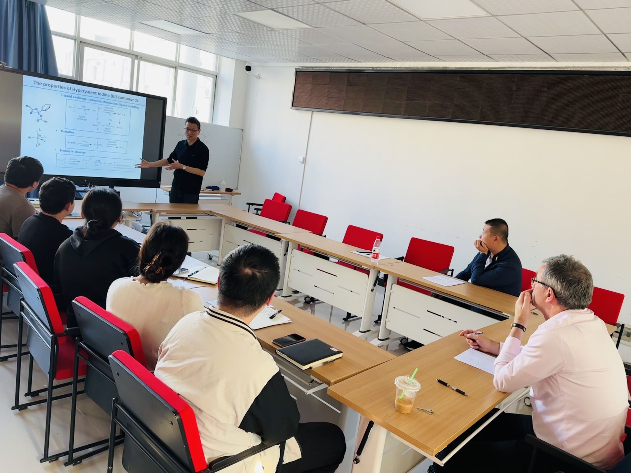David O'Hagan教授详介绍了他深耕氟化学领域数十年的研究经历,系统介绍了他们在氟化酶的分离和应用,新型氟化反应的开发,含氟功能分子、材料的设计与合成等方面取得的重要成果,并对氟化学的发展提出了美好的展望。报告引起在座师生的广泛兴趣和强烈反响,并在报告之后积极与David O'Hagan教授进行了交流互动。