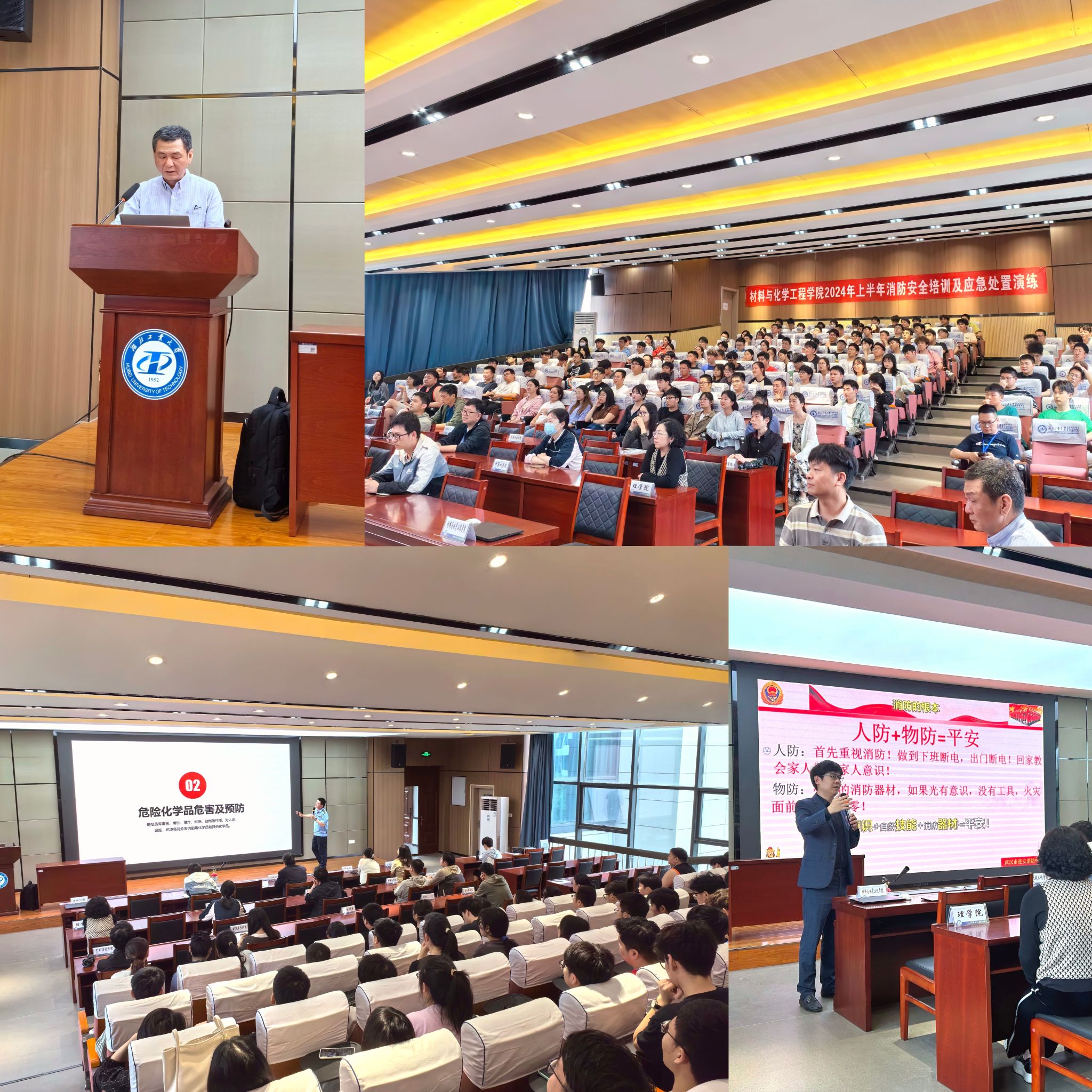 为提高广大师生安全防范意识和应急处置能力,4月25号下午,材料化学工程学院联合学校实验室与资产管理处、保卫处共同举办了实验室消防安全、危化品安全培训及应急处置演练活动,其它兄弟单位实验室负责人及材化学院研究生2023级全体研究生参加了培训和演练;武汉市进安消防技术服务中心应邀为此次活动提供技术指导。学院院长助理谌援教授主持相关活动。